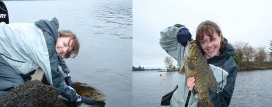 Emily Funnell (above working with smallmouth bass) is