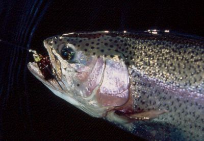 A rainbow fooled by a woolly bugger.