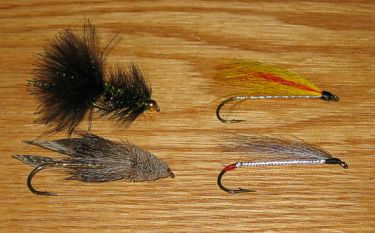 bugger and mickey finn (top), muddler minnow and black nose dace