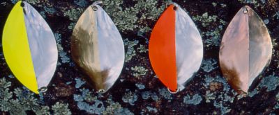 use a small flasher, like Lucky Strike's Silver Lake Wobbler. Next,