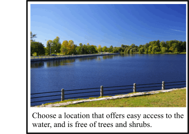 A local pond or lake is an excellent starting point. Make sure that the area you plan to fish is close to home, as long car rides will tire most youngsters out before the fun even begins. The Ministry of Natural Resources has information on local urban spots for Toronto (including the GTA) and Ottawa on their website, which can be a useful guide when planning a day out. http://www.mnr.gov.on.ca/MNR/fishing/urban_ont.html The spot you choose should have good shoreline access (if not using a boat). Grassy areas that are free of trees and shrubs are the best spots for kids.