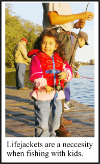 Make sure you bring live bait, long-shanked hooks and a bobber. Bait will give them the greatest chance of catching fish, and the float will make it easy for registering strikes. Aberdeen hooks are best when using worms, and will make hook removal much simpler. If the child gets bored with fishing, playing with the worms or minnows will also bring excitement. And if that's all they feel like doing, then join in the fun, as there are more aspects to fishing than just casting a line. Folding camp chairs will make for a comfy day, especially if there are no benches at the waters edge. Remember that a junior-sized version is best for your pint-sized pal. Always bring a good assortment of snacks and juices in a cooler. Children have big appetites and there's nothing worse than running out of food out on the lake. Take time out for a picnic, and discuss the things you've done and find out what they liked best. Fishing is much more than the physical act of catching a fish. It also involves taking in the scenery and wildlife, as well as the boat ride or splashing along the shoreline. (My greatest pastime was catching crayfish when the pannies stopped biting - my dad always brought a bucket and scoop for this thrilling activity.) Take the time to point out various species of birds or animals you may see, and try to teach your child something about the world that we live in. The knowledge a youngster gains during the time spent growing up will become the habits and direction they choose later on in life - make sure it is a positive aspect you instill.