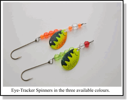 Eye-Tracker Spinners "[The] spinners are handmade designs that are developed to be trolled in open water situations at 1.3 to 2.3 m.p.h. When walleye refuse to strike crank-baits they cannot resist the thumping sound of a spinner tipped with a crawler or artificial bait," the package reads.