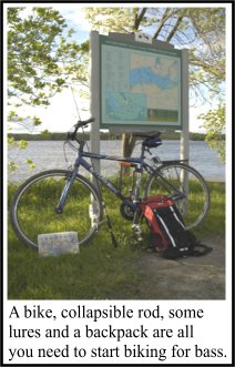 rod to my bike, and peddled to a few shoreline fishing spots along a