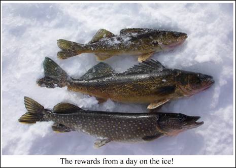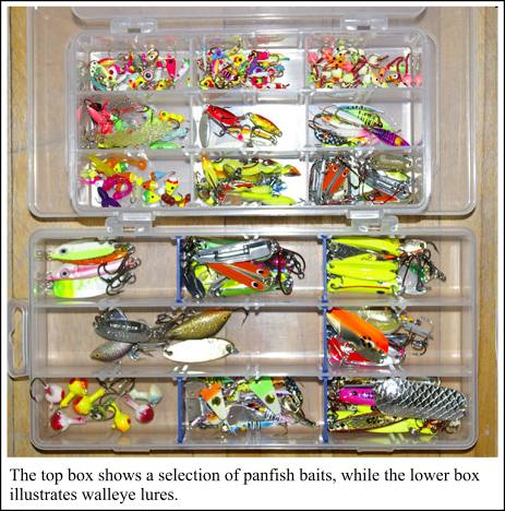 A small assortment of lures will suffice out on the ice, and a basic
