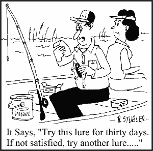 it with a straight face. (That hat makes you wonder just what it is hes fishing for.)