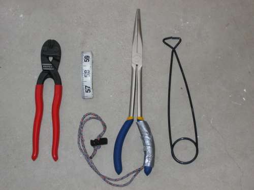 The Right Tools and Gear You will need the right tools to land and release these big predators. Opinions vary on the best device to land a muskie, but nets and cradles (large enough to comfortably hold, or pen, a muskie) are two popular options. You will also need tools to help cut and remove hooks from the fish's mouth, including: long-nosed pliers, hook cutters, jaw spreaders, and hook-removers. Remember, cutting hooks can be faster than removing them with pliers, but it is critical to remove all the hook pieces. Pieces left in the fish can lead to infection and, potentially, death.