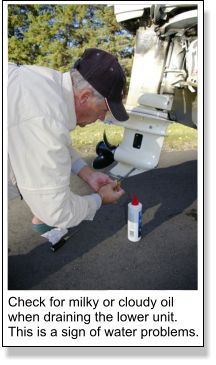 the lower unit of oil, keeping a close eye out for a cloudy or milky