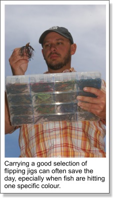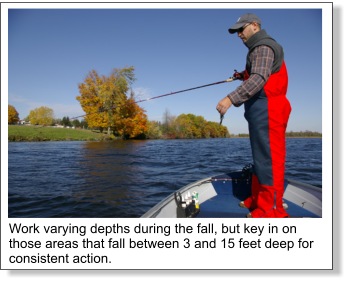 Hail to the Flipping JigNo other lure has accounted for more, or bigger largemouth bass come fall than the flipping jig. My favourite style of bait is a ½ ounce model. Deep water or rough and windy conditions will dictate the use of a heavier jig, at which point switching to a ¾ ounce bait is recommended. Brown, brown/orange, brown/black, and red/black are my top colour choices, although I have also had success with blue, black, and purple. Rattles are an integral part of the system, so make sure your jig is capable of making sound. I rely quite heavily on plastics as trailers, and find that craw chunks in the 3-½ inch size fit my needs perfect. Although my "go-to" combination consists of a Booyah "Boo Jig" and Yum Chunk, other models made by Berkley, Strike King, and Zoom also fit the bill. The technique I employ during the fall is quite simple. Twenty to thirty-foot casts or pitches are the norm, and unless targeting a specific structure point, accuracy is not a necessity. Allow the jig to fall completely to bottom. Reel up the slack, and proceed to slowly drag or hop the bait back to the boat, making sure to maintain contact with the structure you are fishing. ![]() Fish will hit a jig in a number of different ways. If they are very aggressive, you will feel a definite "pop" on the end of your line. They may hit it with a "tap, tap, tap" sensation. The last way is for them to mouth the bait and slowly swim off. This is easy to distinguish, as you will feel a dead weight and your line will begin moving off to the side. Whichever the case, rearing back on the rod with all your might is mandatory. Heavy flipping gear is the name of the game when working the rocks. I prefer a Kistler LTX 7'6" heavy action flipping stick. As for line, 20 or 25lb clear monofilament line on a smooth and dependable baitcast reel works for me. For those into braid, choose a test strength in a matching diametre. Fall time is one of splendour. The scenery is breathtaking and the bass run big, and for all of us trophy hunters, there is no better time of season to reap the phenomenal rewards. Thanksgiving indeed.