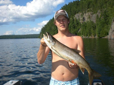 Lake Trout during the summer can be found roaming deep flats on lakes chasing schools of cruising baitfish. During the lowlight hours of morning and evening often fish will come shallower or rise in the water column to feed but not near as shallow as they would during spring and fall. Weather your paddling in one of Ontario`s famous provincial parks or trolling in a deep cold northern Ontario lake catching the often illusive summer lake trout can be easy as finding deep water flats. Trolling Presentations When trolling for Lakers I will usually begin with a Williams Wobler spoon followed by a smelt. This rig consists of a Williams Spoon usually in hammered gold/ hammered silver with the treble hook removed and a barrel swivel put in its place. Then tie a 16-36 inch fluorocarbon leader to an octopus hook using a snell knot and tie a small treble hook to the tag end of the line 3-4 inches back. Hook the single hook under the smelts jaw through its snout and the treble somewhere between the dorsal fin and the tail. This part is where you can put your smelt to your desired rotation behind the spoon. The closer you put the hook to the dorsal fin the tighter spin you will receive. If you decide you want a wider, slower spin hook the smelt closer to the tail. This will give the smelt a bigger bend the closer you get to the tail. My second set-up is very similar. Instead of a spoon, I will attach a mini flasher then a 16-36 inch fluorocarbon leader to a minnow teaser. Lure Jenson’s minnow teaser is basically a tiny plastic box which you insert the head of the smelt in. Secure the smelt by placing a toothpick through the hole of the teaser through the smelt’s head and back through the other hole in the teaser. Teasers offer an amazing slow rolling action behind the downrigger. Another option for lake Trout is to troll artificial baits such as smelt imitating body baits or flutter spoons. I usually begin trolling around 1 mph but I will vary my speeds from 0.5-1.5 mph. Use an S- turn trolling pattern with the boat and imply short speed bursts on